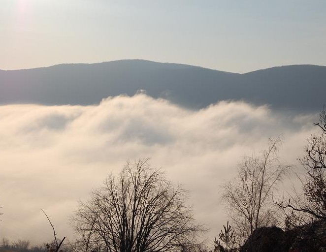 7. február, no počasie ako na jar. Stúpame a žasneme, nádherná inverzia. Čím vyššie, tým teplejšie. Ešte niekoľko záberov na tú krásu, pred ňou pózujeme my. Na skalách sa vyzliekame, prezliekame, obliekame ... a hneď sa ide lepšie. Veselá nálada, smiech.