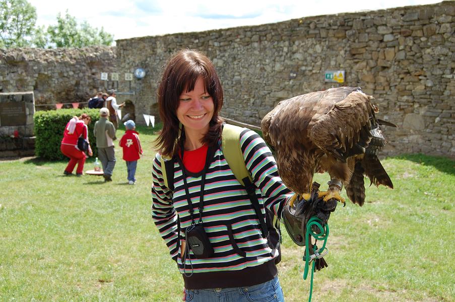 Živé spestrenie nášho výletu bolo vystúpenie sokoliarov a ich dravcov. Ukážky týchto vtákov upútali našu pozornosť, treba mať s nimi veľkú trpezlivosť. Čas neúprosne letí a tak ideme ešte do ľubovnianského skanzenu, ktorý je národopisnou expozíciou v prírode. Slúži verejnosti od roku 1984. Ľudová tradícia, piesne, tance, obyčaje a zvyky je moja druhá veľká záľuba. Týmto miestom som bola úplne nadšená, očarená a tak troška vyvedená z miery.