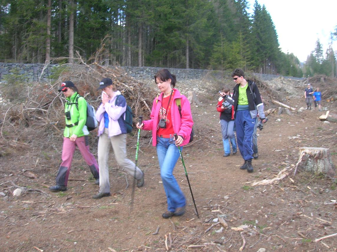 Došli sme do polky a dosť, keďže časovo to nestíhame, Téryho chatu obdivujeme iba z diaľky. Pristavili sme sa pri členoch z Horskej záchrannej službe, ktorí nám porozprávali o ich práci, no najzaujímavejšia bola prednáška o lavínach. Excelentný pád lavíny naživo, to neuvidí hocikto. Jarík, môžeš ľutovať, že si neprišiel, ale aspoň fotky si pozri. Na ceste späť hrozilo, že už bude pršať, no dážď nás zázračne obišiel.